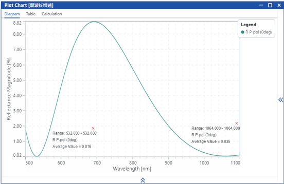 在本应用案例中,通过选用成熟的初始结构并对其厚度进行进一步优化,设计出一种在可见光波段具有优异减反射性能的镀膜。