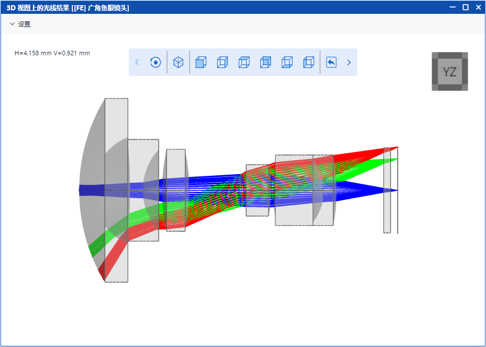 广角鱼眼镜头在全景监控、虚拟现实、无人机环视、车载辅助驾驶和科学观测等超大视场成像领域得到广泛应用。该类镜头通过极短焦距与特殊投影设计,可实现接近或超过180°的宽视场成像。鱼眼镜头通常采用多组非球面或自由曲面透镜,以校正大视角下的像差并控制畸变;在需要时还可引入衍射光学元件(DOE)以提升成像质量并减轻