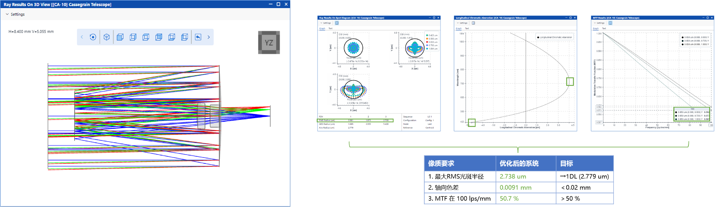 卡塞格林望远镜广泛应用于天文观测,卡塞格林望远镜广泛应用于天文观测、空间成像和激光测距等领域,凭借其折叠光路设计,实现了长焦距与紧凑结构的结合,具有口径大、像差校正能力强和易于安装探测器等优点。在本案例中,将通过设计一个典型的折返式卡塞格林望远镜光学系统,演示在 UniOptics 中的光学设计流程,包括初始结构建立、像差分析、评价函数定义、优化。