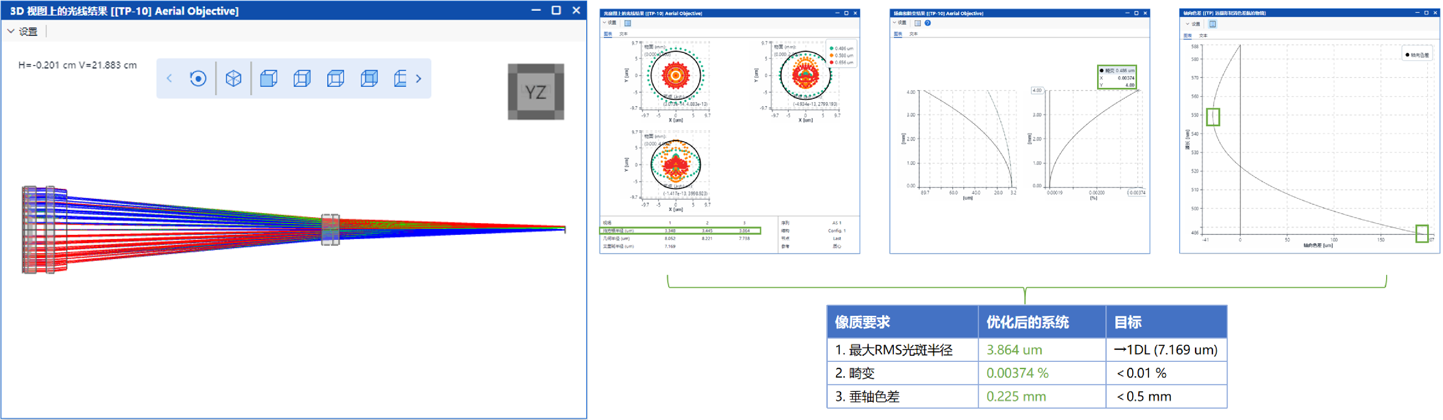 远摄型复消色差航拍物镜在航空摄影、遥感测绘及无人机航拍等高精度成像领域得到广泛应用。凭借其远摄光学结构与复消色差设计,该类镜头能够在远距离拍摄条件下实现卓越的空间分辨率和精确的色彩校正,同时兼具色差抑制能力强、成像清晰锐利及视场均匀性高等优势。在本案例中,将通过设计一个典型的远摄型复消色差航拍物镜,