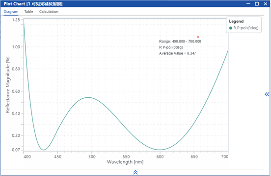 在本应用案例中,通过选用成熟的初始结构并对其厚度进行进一步优化,设计出一种在可见光波段具有优异减反射性能的镀膜。