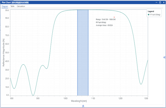 在本案例中,针对Nd:YAG激光器的谐振腔,我们基于λ/4膜堆结构,通过理论分析确定了的初始膜系设计;同时利用电场分布分析对膜层结构进行优化,使得在满足高反射率要求的同时,薄膜整体的激光损伤阈值得到了显著提高。
