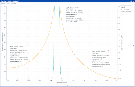 在本案例中,我们设计了一种带宽窄、通带波纹小、截止带透射隔离度高的全介质窄带滤光片。该滤光片能够实现高精度的信号分离,有效抑制杂散光干扰,从而显著提升系统的信噪比与整体光学性能,适用于高要求的光通信场景。
